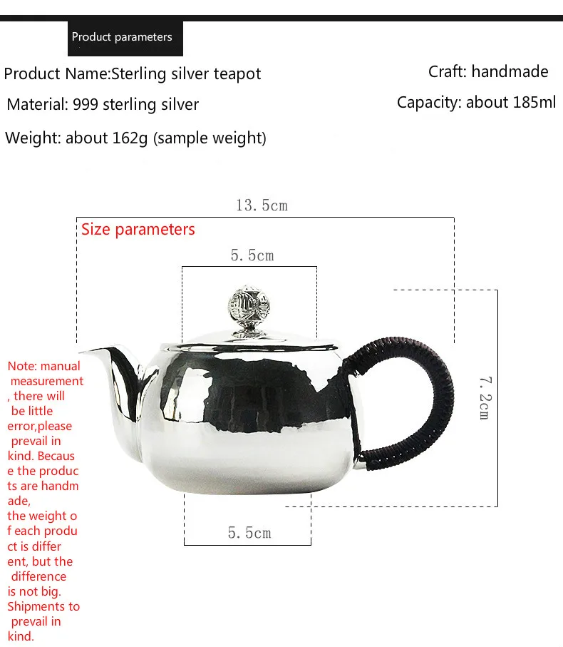 High grade 999Silver made Tea Kettle Kung Fu Tea gift for family and friends kitchen office tea set