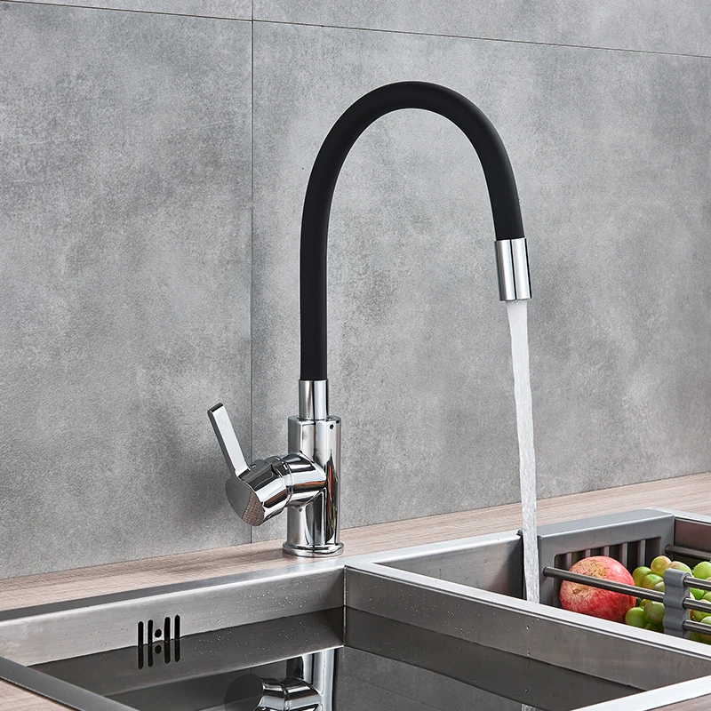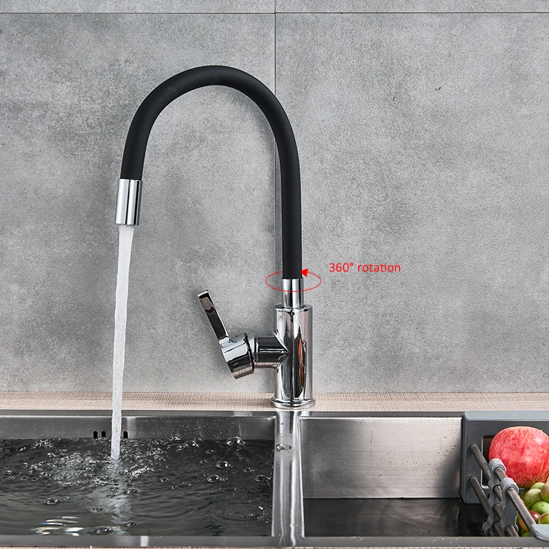 Vidric Chrome Brass Black Kitchen Sink Faucet Flexible Rubber Hot Cold Water Mixer Tap Rotation Kit