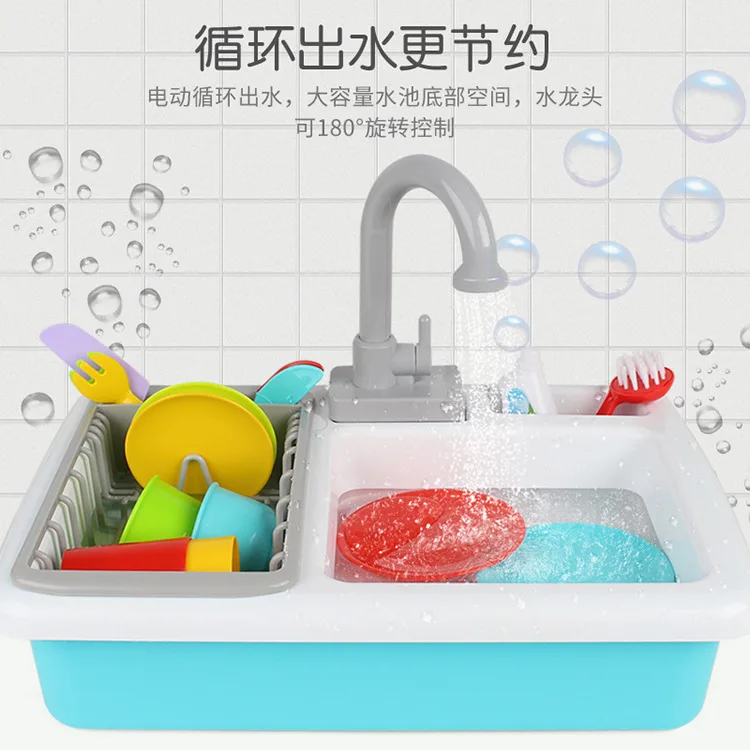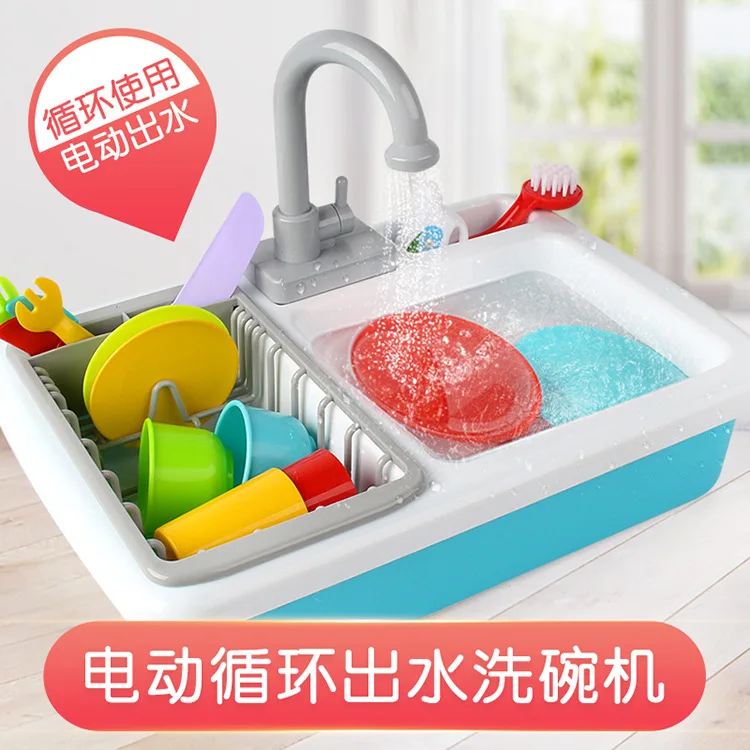 Children Play House Toys Electric Water Cycle Model Kitchen Tableware Washing Counter Assembled Toy