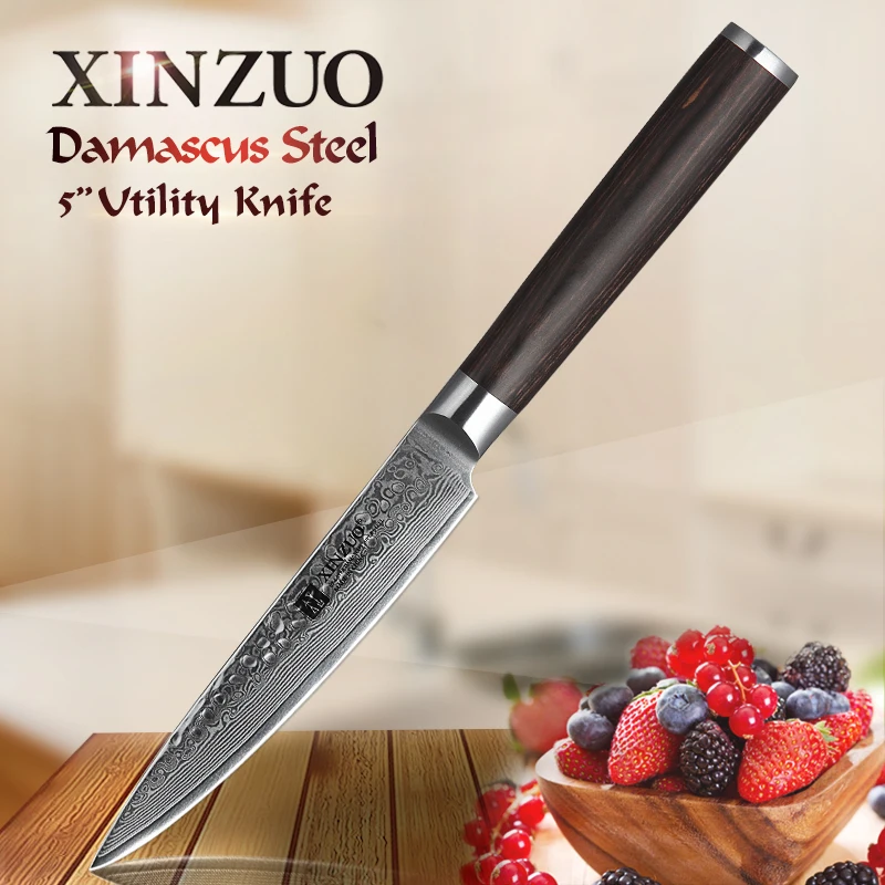XINZUO 5" inch Utility Knife 67 layers Damascus Kitchen Fruit Knife Stainless Steel Chef Cleaver Pe