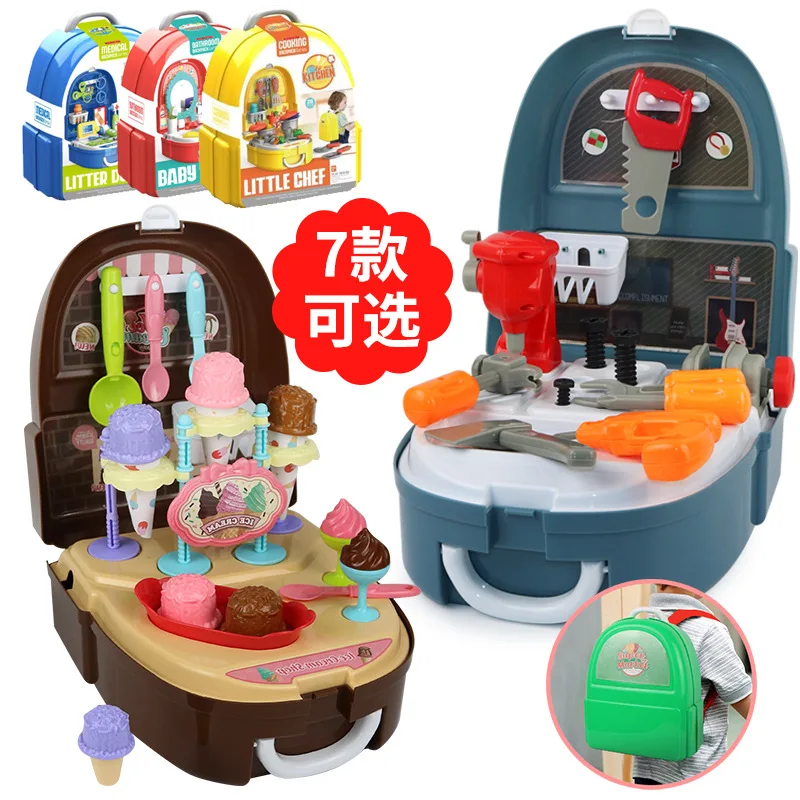 HOT SALE Play House Children Model Tool Barbecue Makeup Doctor Set Kitchen Tableware Ice Cream Suitcase Back