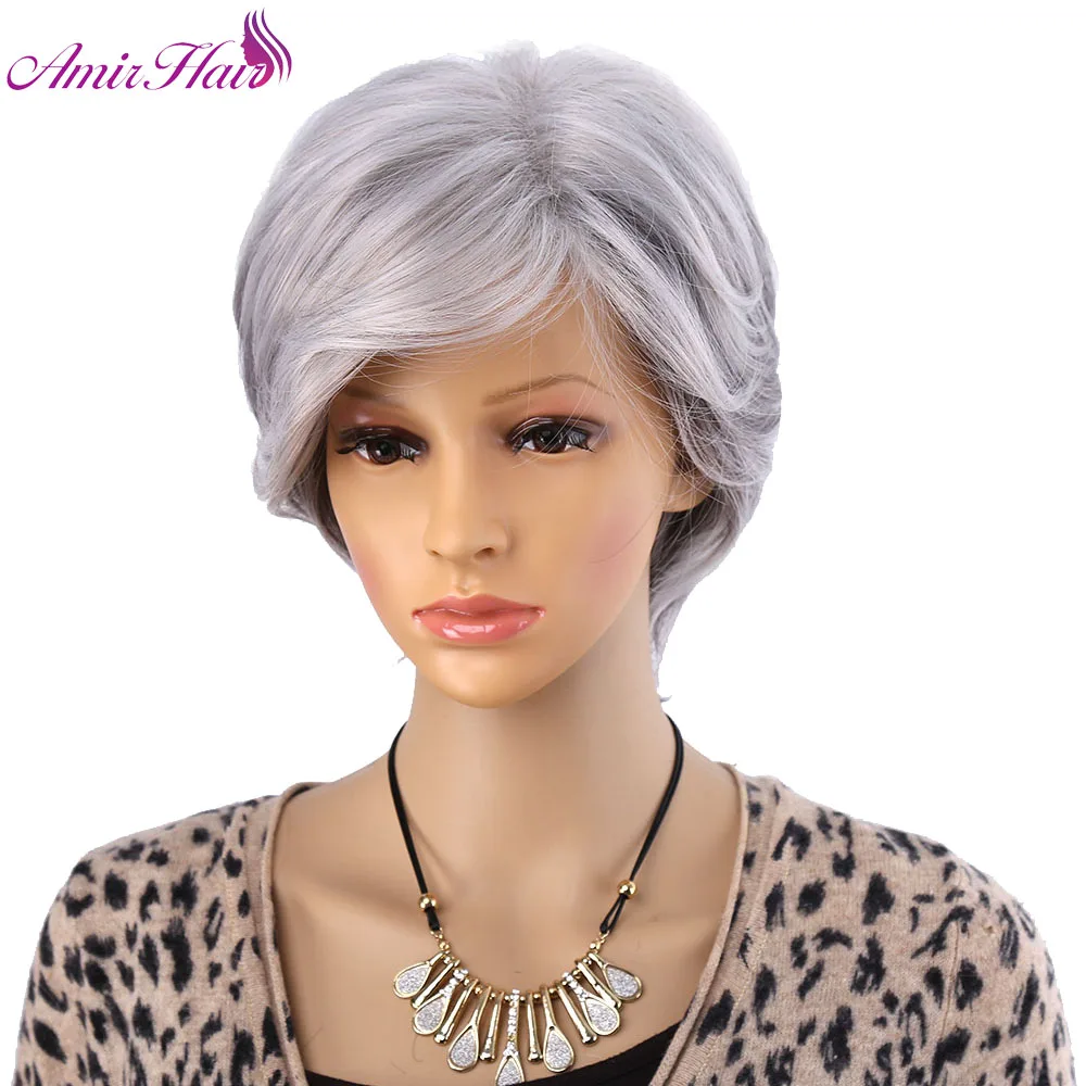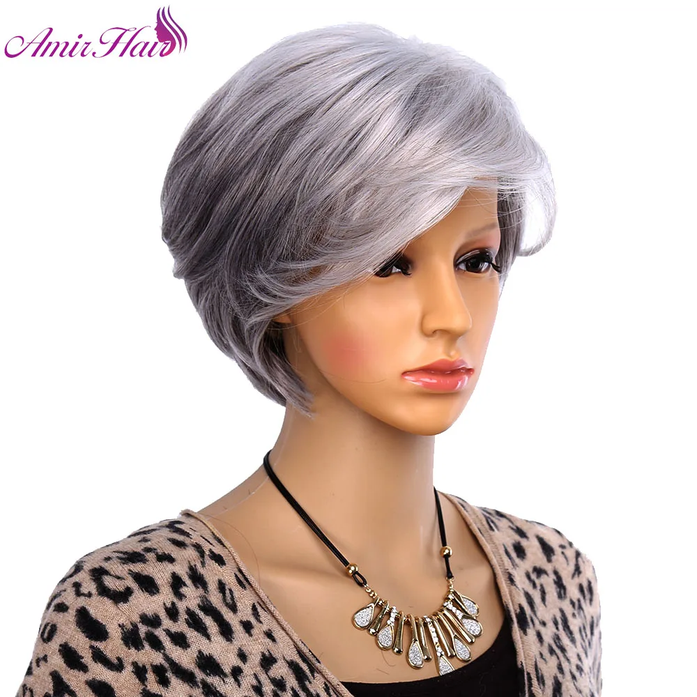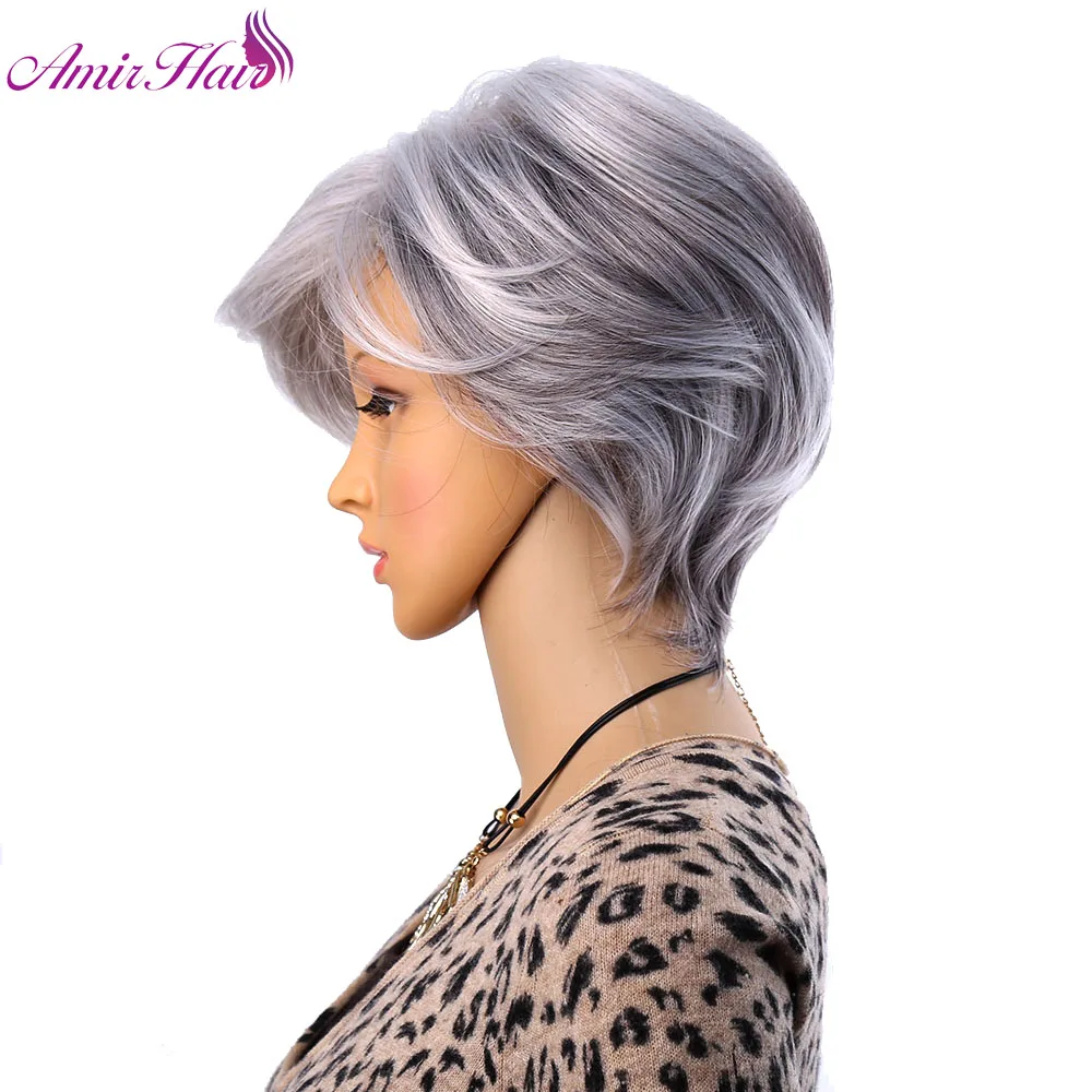 Amir Short Black Wigs For Women Synthetic Hair Wigs Female Heat Resistant Fiber Color Ombre Grey Wi