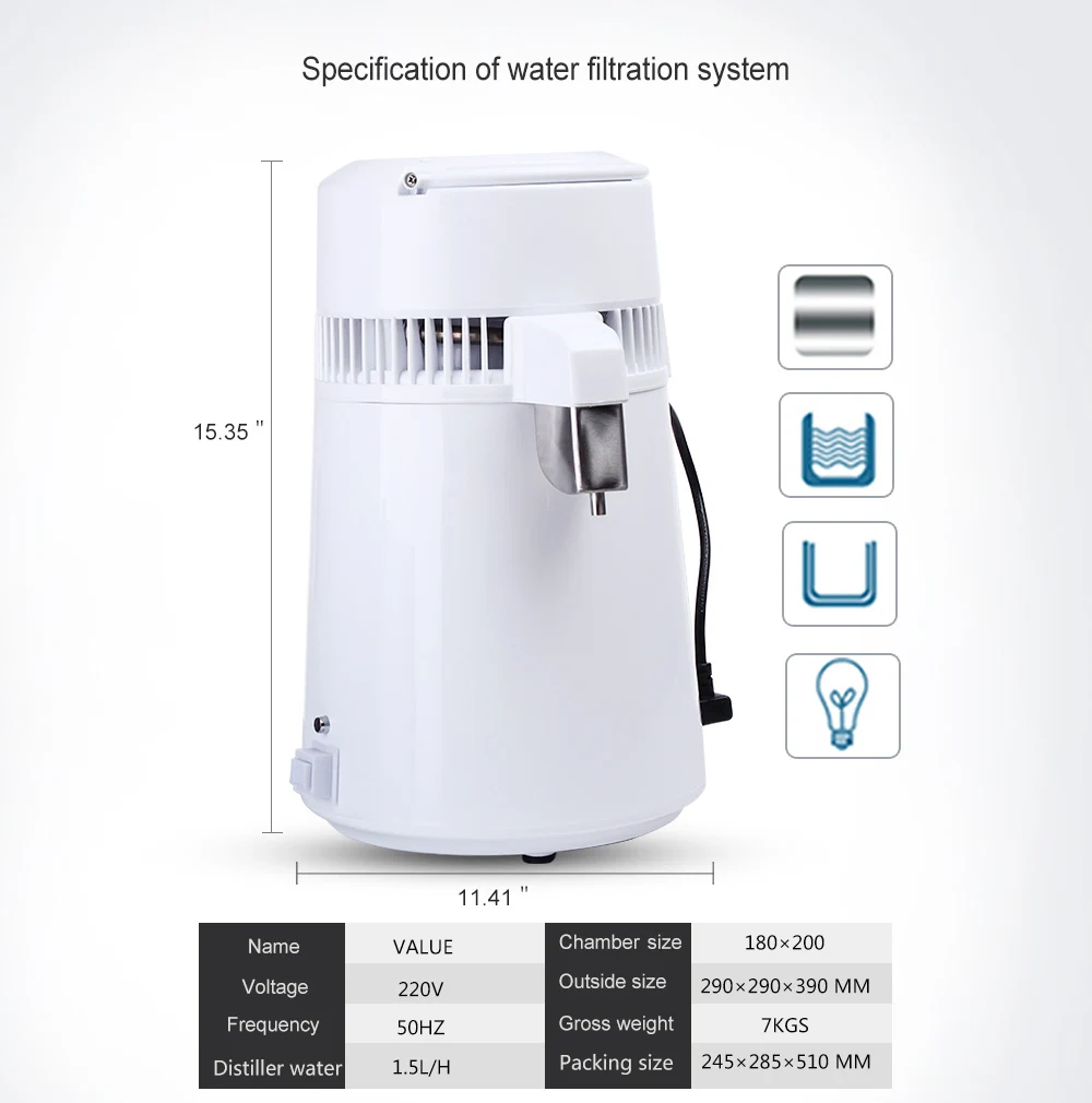 Housing Use 4L Water Distiller Distilled Water Machine Distillation Purifier Stainless Steel Water