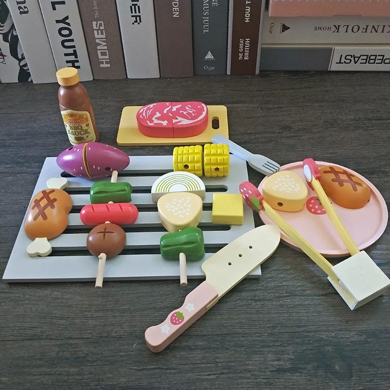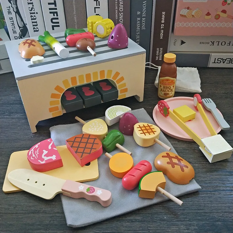 Kitchen Barbecue Cooking Toy Stove Counter Bar Bench Set Children Wooden Play House Model 345-Year-