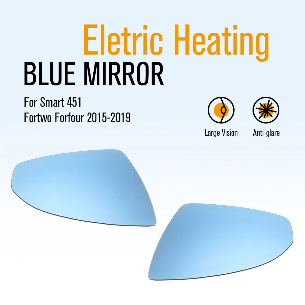 2pcs Electronic Heating Anti-glare Blue Rear View Mirror For Smart Fortwo Forfour 451 2009-2014 Lar