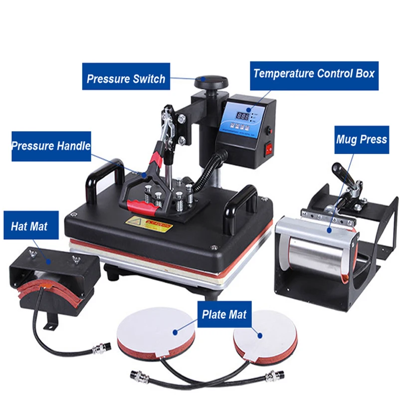 BEST QUALITY 30*38CM 5 in 1 Combo Heat Press Printer Machine 2D Sublimation Vacuum Heat Press Printer for T-shir